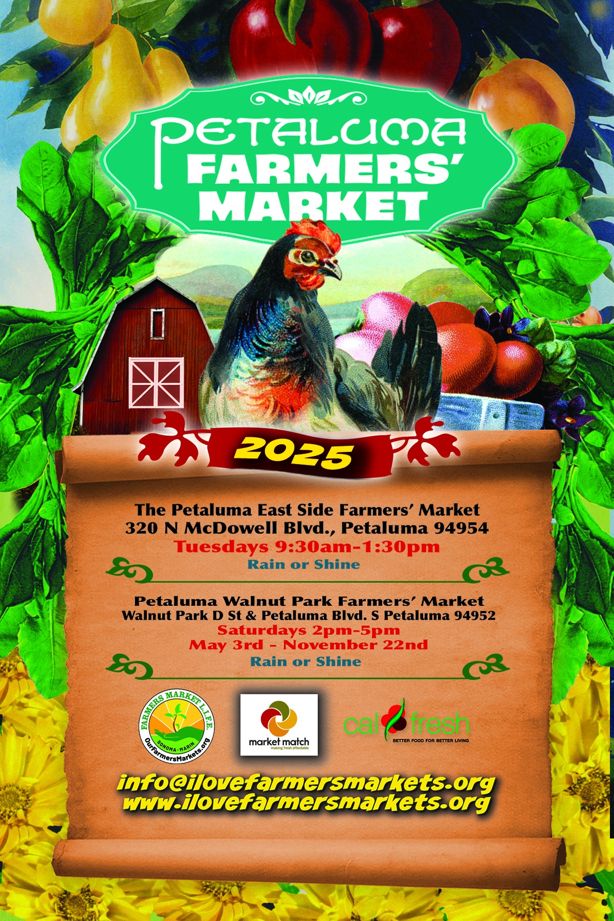 Get a $50 gift certificate for $25 to use at any of the Agricultural Community Farmers Markets in Sonoma County. You must take the gift certificate to the information booth at the markets to exchange for MARKET BUCKS that can be used for anything sold at the market! 1 per person per visit! Fresh veggies direct from the farmers, locally raised meats and dairy from the ranchers, locally produced food products, restaurant quality prepared foods, artisan arts & crafts, jewelry, soaps and candles, and so much more!